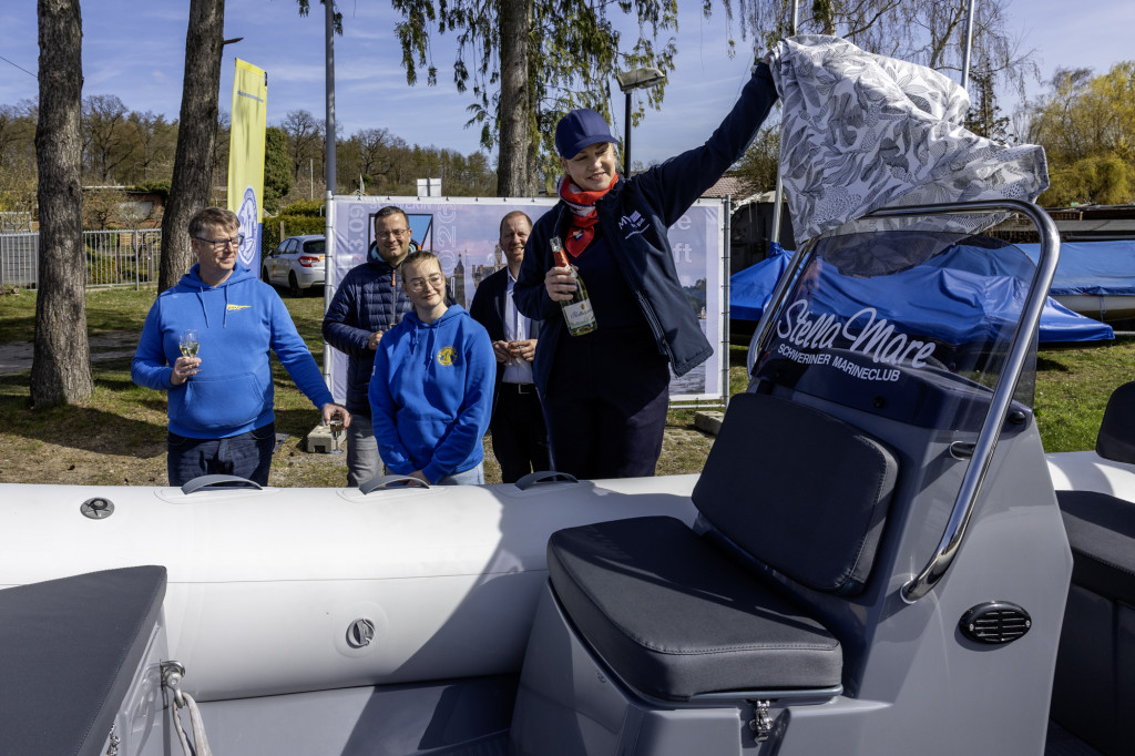 Schwerin, 12.04.2026. Die Ministerpräsidentin des Landes Mecklenburg-Vorpommern, Manuela Schwesig, hat am Sonnabend, den 11. April, im Schweriner Marineclub (SMC) das neue Schlauchboot auf den Namen „Stella Mare“, Stern des Meeres, getauft. „Endlich geht es wieder los. Mit dem Frühling startet die Segelsaison! Und wir starten gleich mit einem schönen Termin: der Taufe des neuen Schlauchboots für das Kuttertraining und für Wettkämpfe hier im Schweriner Marineclub. Der Segelsport gehört zu unserem Land. Und er ist immer auch ein toller Botschafter für Mecklenburg-Vorpommern. Ich wünsche dem neuen Boot allzeit gute Fahrt“, sagte die Taufpatin auf dem Vereinsgelände am Schweriner Heidensee.
